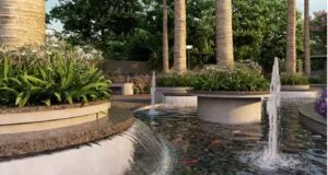 Sustainable water management system helps recharge groundwater and promotes eco-balance across the layout.